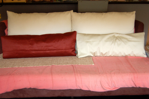 暇すぎて数年前に買った切れ端でクッションカバーを作りました。