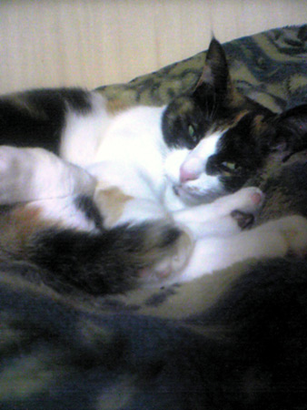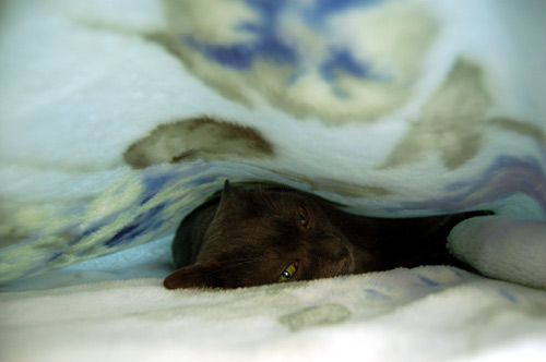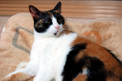 (モモ専用毛布の中でぬくぬく中)