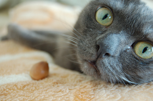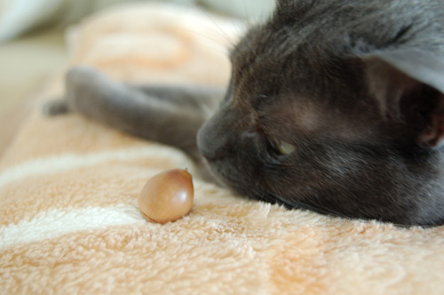 モモたんにどんぐりを見せてみた