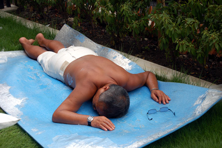 エブリディ庭で日焼けです