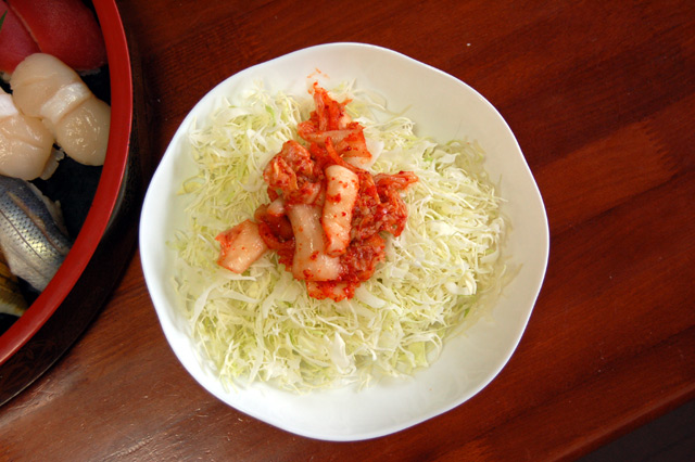 キャベツにキムチが盛ってあるだけです。