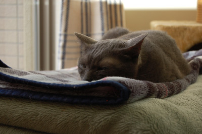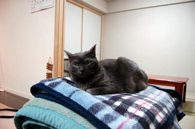 旧居で使っていたボロボロの毛布をそのまま持参。