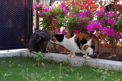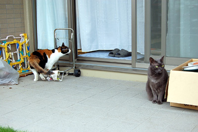 「まだイヤー!」とジタバタ嫌がる2匹を無理やりウチへ入れたが、
