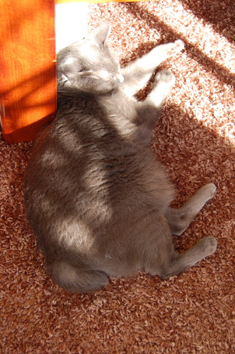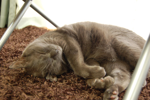 日光浴をしているメタボ猫